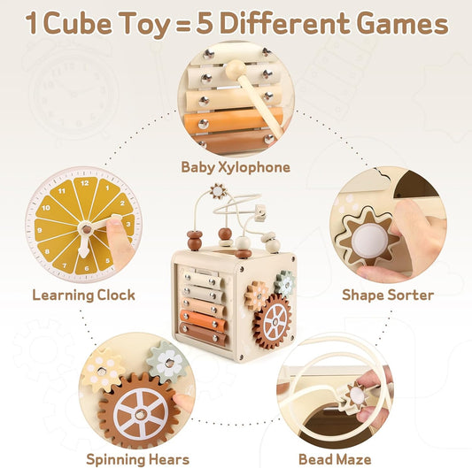 Wooden Activity Cube Sensory Toys for Babies