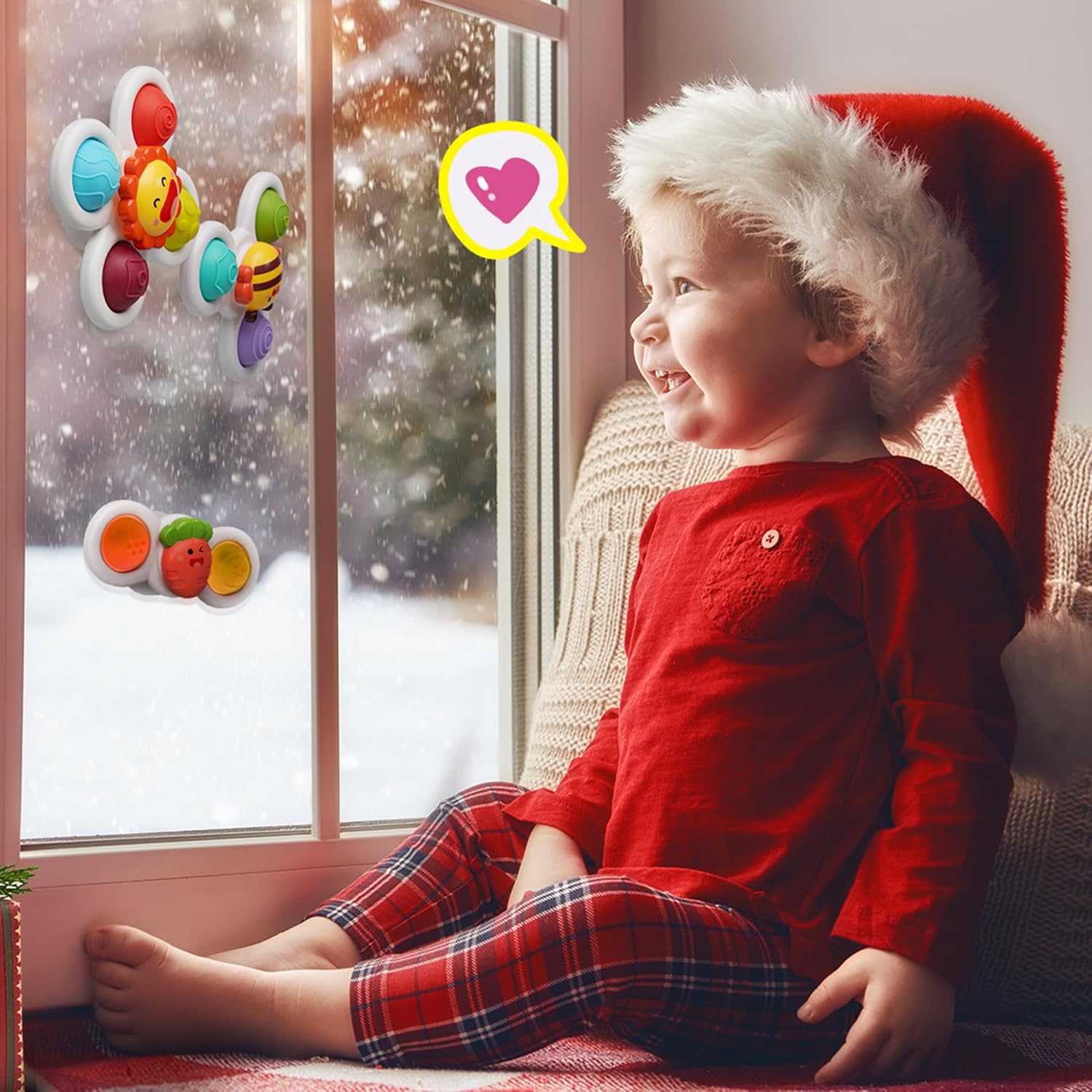 LiKee Strong Suction Cup Fidget Rotating Sensory Bath Toys for Baby, Airplane Car Travel Table & Window Toys for Toddler Boys and Girls, 10+ Months